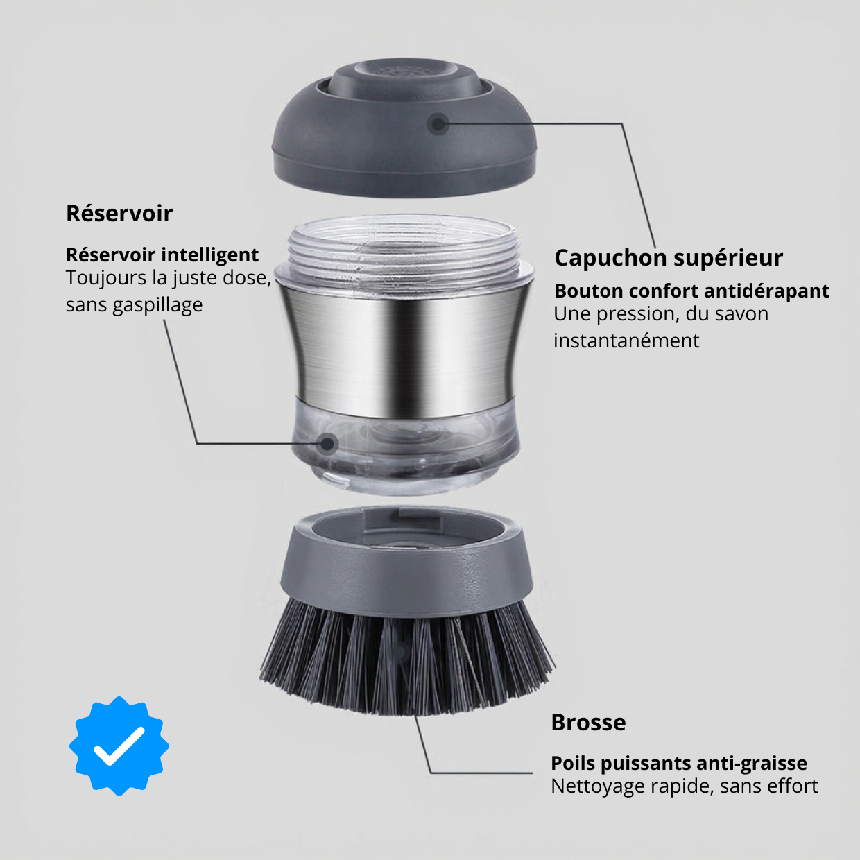 Une brosse avec réservoir de savon intégré qui simplifie le nettoyage au quotidien