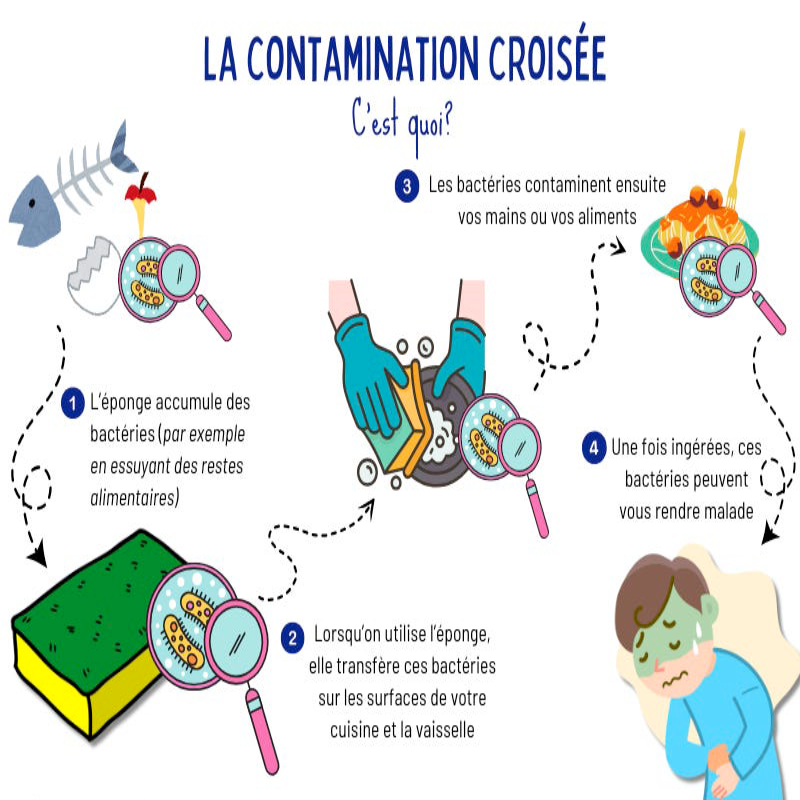"Objet du quotidien en apparence propre, l’éponge de cuisine est pourtant l’un des plus grands nids à bactéries : jusqu’à 54 milliards de germes par centimètre carré."